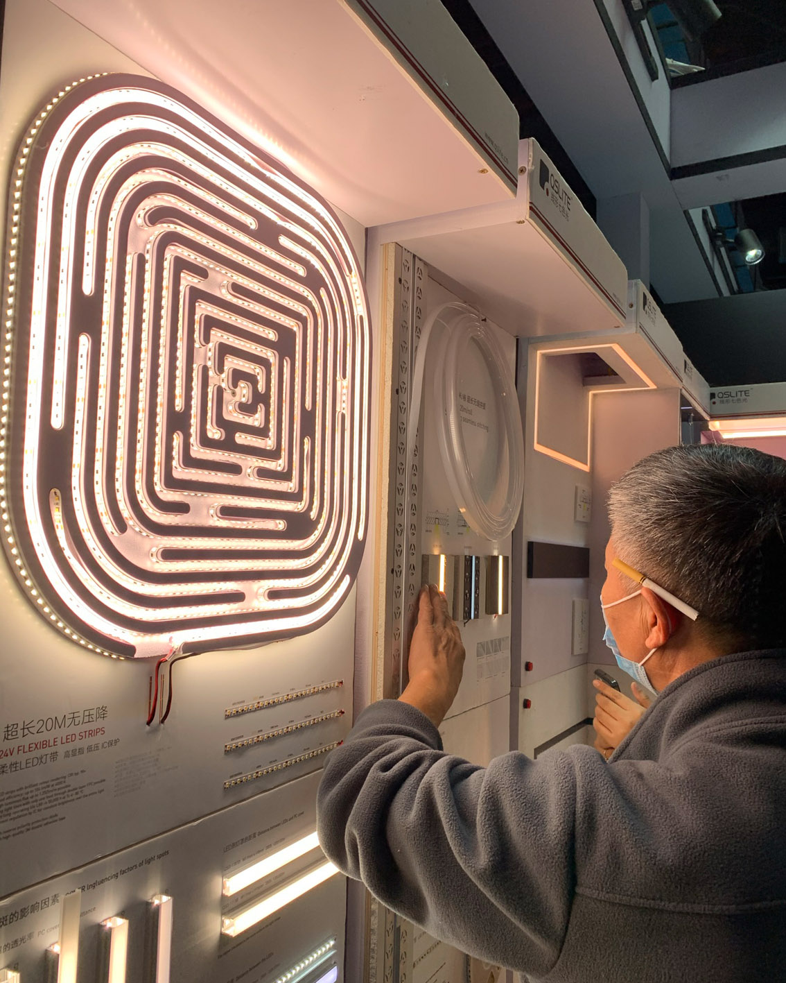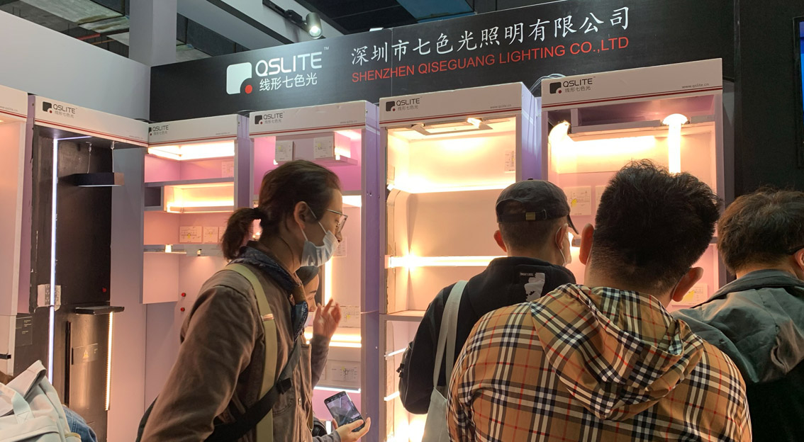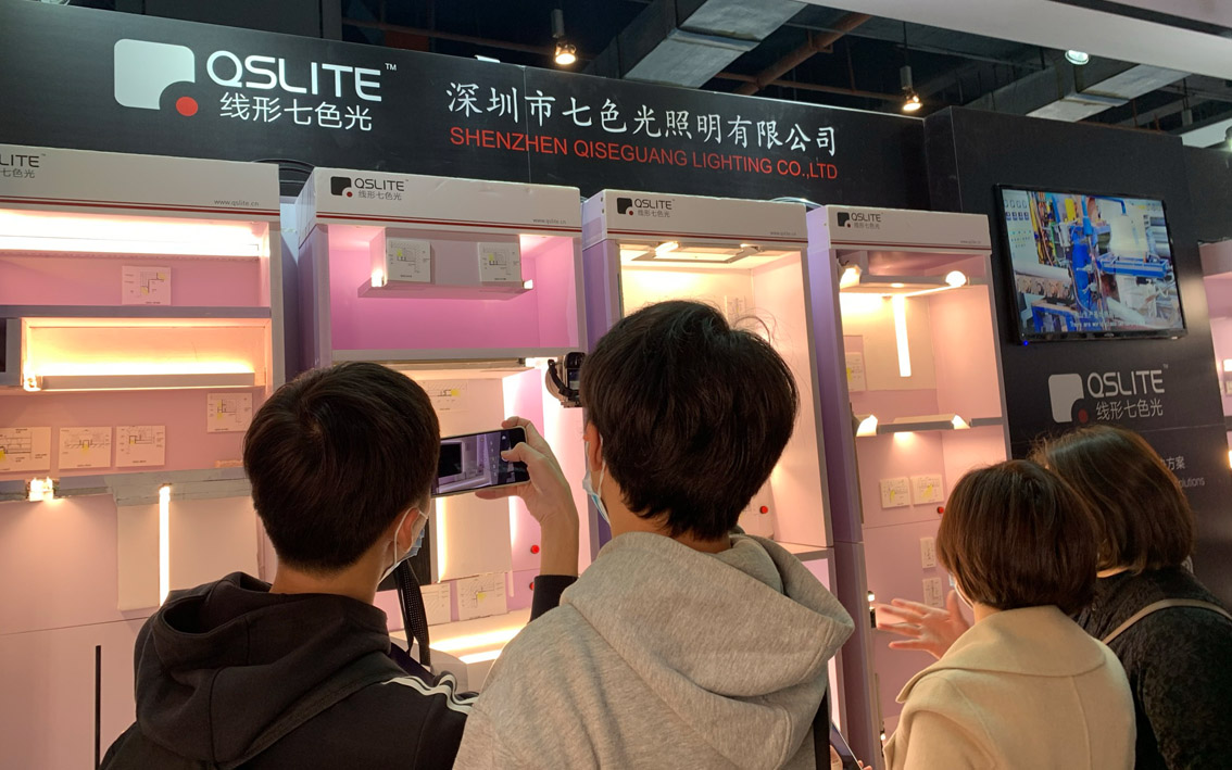我们的展厅有“七色光”的特色灯带、线形灯具以及电源等,我们会带着客户一起了解产品结构,看产品的实际效果。